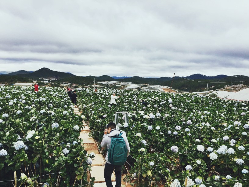 Vào ngày thứ 2 tại Đà Lạt, sau khi đã đi tham quan Chùa Linh Phước, tụi mình quyết định luôn là sẽ ghé qua vườn hoa cẩm tú cầu mới ở gần Ga Trại Mát. Nếu như bạn thích chụp hình và check-in làm kỉ niệm thì đây ắt hẳn là một trong những địa điểm ở Đà Lạt bạn không thể bỏ qua.