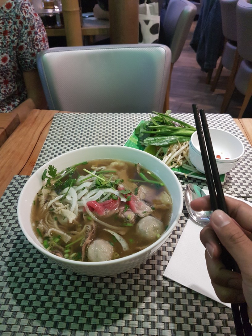 Ngửi thấy những mùi thơm đặc trưng, thấy bia Sài Gòn đỏ trên bàn bên cạnh, thấy mấy dĩa rau thơm dọn ra cùng tô phở nóng, thật khó để bất kì du khách Việt nào, nhất là những du khách đã đi xa nhà gần 1 tháng, vừa mệt, vừa đói lả như tui kiềm lòng.