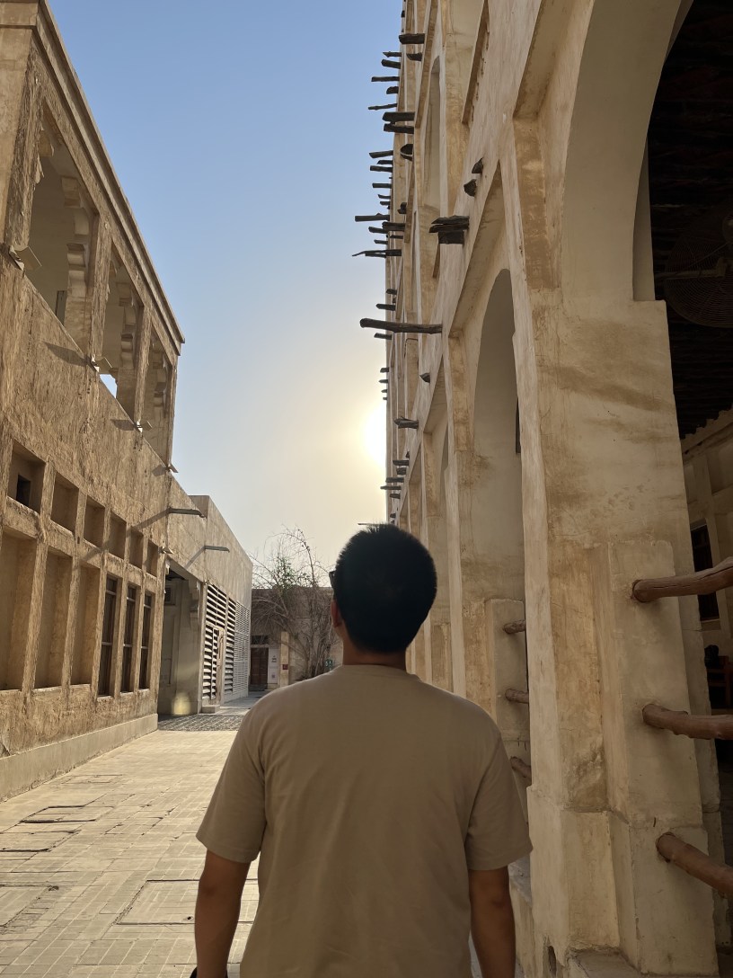 Bước ra khỏi sân bay, ngay lập tức da tụi tui như bị ép lại và nhơm nhớp như kiểu có muối trong không khí – thời tiết 4h đêm cực kỳ oi bức. Cái nóng làm tui bất ngờ, vì dù đã quen với thời tiết nhiệt đới nóng ẩm ở Việt Nam, nhưng nhiệt độ ở Qatar lại ở một tầm khác. Sáng hôm sau thức dậy, tui định ăn sáng xong sẽ đi tà tà ra phố ngắm đường một tí, nhưng ý tưởng này đã bị dẹp bỏ nhanh chóng vì nhiệt độ ngoài trời lúc 9h sáng lên tới 43 độ C. Tất nhiên, tất cả các phương tiện di chuyển và nhà ở Qatar đều có máy lạnh, nếu không, cái sự nóng này sẽ dễ dàng làm mọi người phát điên mất.